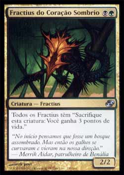 | Fractius do Coração Sombrio Criatura - Fractius Todos os Fractius têm 'Sacrifique esta Permanente: Você ganha 3 pontos de vida.' T1 | |