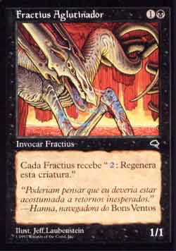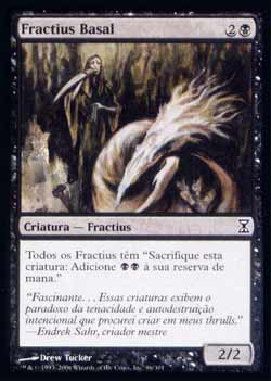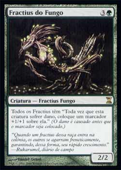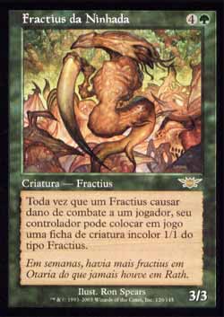 | Fractius da Ninhada Criatura - Fractius Toda vez que um Fractius causar dano de combate a um jogador, seu controlador pode colocar uma ficha de criatura incolor 1/1 do tipo Fractius no Campo de Batalha. T1 | |