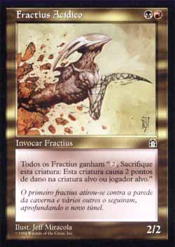 | Fractius Acídico Criatura - Fractius Todos os Fractius têm '  , sacrifique esta Permanente: Esta Permanente causa 2 pontos de dano à criatura ou ao jogador alvo.' T1 | |