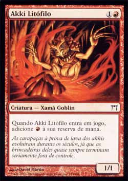 | Akki Litófilo Criatura - Goblin Xamã Quando Akki Rockspeaker entrar no Campo de Batalha, adiciona  a sua reserva de mana. T1 | |
