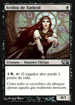 | Acólito de Xathrid Criatura - Humano Clérigo   ,  : O jogador alvo perde 1 ponto de vida. T4 | |