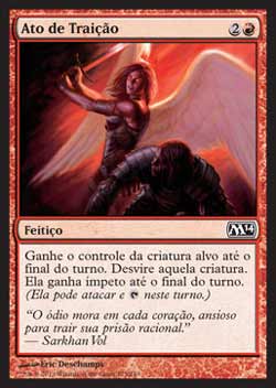 | Ato de Traição Feitiço Ganhe o controle da criatura alvo até o final do turno. Desvire aquela criatura. Aquela criatura tem Ímpeto até o final do turno. T2 | |