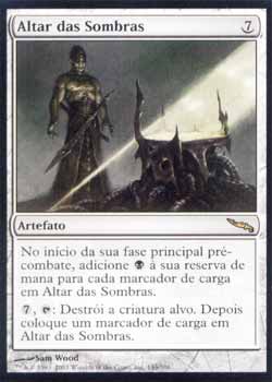| Altar das Sombras Artefato No início de sua Primeira Fase Principal, adiciona  a sua reserva de mana para cada marcador de carga em Altar of Shadows.  ,  : Destrói a criatura alvo. Então coloque um marcador de carga em Altar of Shadows. T1 | |