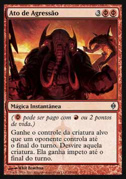 | Ato de Agressão Ganhe o controle da criatura alvo que um oponente controla até o final do turno. Desvire aquela criatura. Ela tem Ímpeto até o final do turno. T2 | |