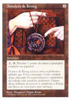 | Amuleto de Kroog Artefato  ,  : Previne o próximo 1 ponto de dano que seria causado à criatura ou ao jogador alvo durante este turno. T1 | |