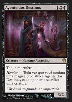 | Agente dos Destinos Criatura - Humano Assassino Toque Mortífero. Heroico - Toda vez que você Conjurar uma mágica cujo alvo seja Agent of the Fates, cada oponente sacrifica uma criatura. T0 | |