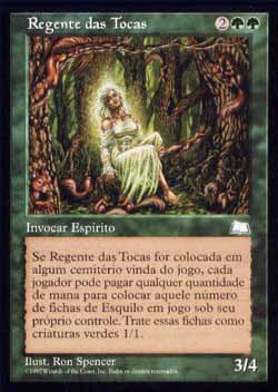 | Regente das Tocas Criatura - Espírito Quando Liege of the Hollows Morrer, cada jogador pode pagar qualquer quantidade de mana. Então cada jogador coloca no Campo de Batalha um número de fichas de criatura verde 1/1 do tipo Esquilo igual à quantidade de mana que aquele jogador pagou desta forma. T1 | |