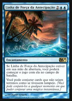 | Linha de Força da Antecipação Encantamento Se Leyline of Anticipation estiver em sua mão inicial, você pode começar o jogo com Leyline of Anticipation no Campo de Batalha. Você pode Conjurar cards que não sejam de terreno como se eles tivessem Lampejo. T4 | |