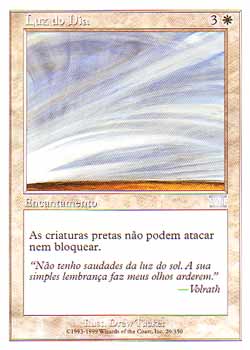 | Luz do Dia Encantamento As criaturas pretas não podem atacar ou bloquear. T1 | |