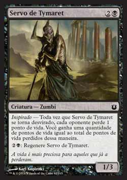 | Servo de Tymaret Criatura - Zumbi Inspirado - Toda vez que Servant of Tymaret for desvirado, cada oponente perde 1 ponto de vida. Você ganha uma quantidade de pontos de vida igual aos pontos de vida perdidos desta forma.   : Regenera Servant of Tymaret. T0 | |