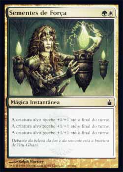 | Sementes de Força A criatura alvo ganha +1/+1 até o final do turno. A criatura alvo ganha +1/+1 até o final do turno. A criatura alvo ganha +1/+1 até o final do turno. T1 | |