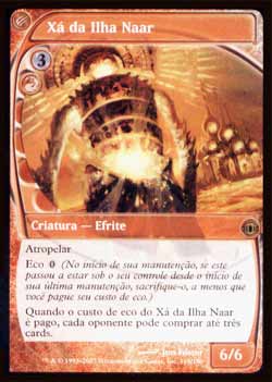 | Xá da Ilha Naar Criatura - Efrite Atropelar. Eco 0. Quando o custo de Eco de Shah of Naar Isle for pago, cada oponente pode comprar até três cards. T1 | |