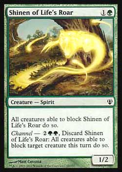 | Shinen do Rugido da Vida Criatura - Espírito Todas as criaturas aptas a bloquear Shinen of Life's Roar o fazem. Canalizar -    , descarte Shinen of Life's Roar: Todas as criaturas aptas a bloquear a criatura alvo o fazem. T1 | |