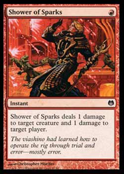 | Chuva de Centelhas Shower of Sparks causa 1 ponto de dano à criatura alvo e 1 ponto de dano ao jogador alvo. T1 | |