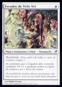 | Escudos de Velis Vel Morfolóide. As criaturas que o jogador alvo controla ganham +0/+1 e todos os tipos de criatura até o final do turno. T1 | |