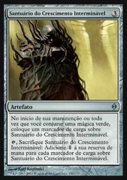 | Santuário do Crescimento Interminável Artefato No início de sua Etapa de Manutenção ou toda vez que você Conjurar uma mágica verde, coloque um marcador de carga em Shrine of Boundless Growth.  , sacrifique Shrine of Boundless Growth: Adiciona  a sua reserva de mana para cada marcador de carga em Shrine of Boundless Growth. T2 | |