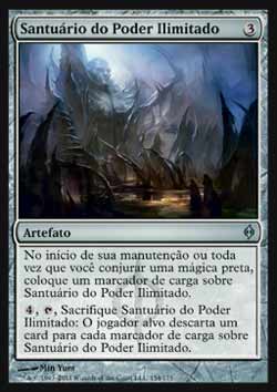 | Santuário do Poder Ilimitado Artefato No início de sua Etapa de Manutenção ou toda vez que você Conjurar uma mágica preta, coloque um marcador de carga em Shrine of Limitless Power.  ,  , sacrifique Shrine of Limitless Power: O jogador alvo descarta um card para cada marcador de carga em Shrine of Limitless Power. T2 | |