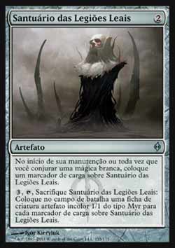 | Santuário das Legiões Leais Artefato No início de sua Etapa de Manutenção ou toda vez que você Conjurar uma mágica branca, coloque um marcador de carga em Shrine of Loyal Legions.  ,  , sacrifique Shrine of Loyal Legions: Coloque no Campo de Batalha uma ficha de criatura artefato incolor 1/1 do tipo Myr para cada marcador de carga em Shrine of Loyal Legions. T2 | |