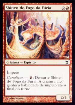 | Shinen do Fogo da Fúria Criatura - Espírito Ímpeto. Canalizar -  , descarte Shinen of Fury's Fire: A criatura alvo tem Ímpeto até o final do turno. T1 | |