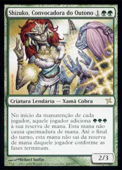 | Shizuko, Convocadora do Outono No início da Etapa de Manutenção de cada jogador, aquele jogador adiciona    à sua própria reserva de mana. Até o final do turno, este mana não é esvaziado da reserva de mana daquele jogador no final de cada Etapa e Fase. T1 | |