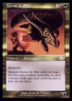 | Vorme de Shiv Criatura - Vorme Atropelar. Quando Shivan Wurm entrar no Campo de Batalha, devolva uma criatura vermelha ou verde que você controla para a mão de seu dono. T1 | |