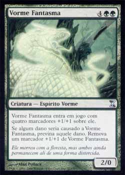 | Vorme Fantasma Criatura - Vorme Espírito Phantom Wurm entra no Campo de Batalha com 4 marcadores +1/+1. Se dano fosse ser causado a Phantom Wurm, previne aquele dano. Remova um marcador +1/+1 de Phantom Wurm. T1 | |