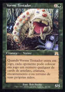 | Vorme Tentador Criatura - Vorme Quando Tempting Wurm entrar no Campo de Batalha, cada oponente pode colocar qualquer número de cards de artefato, criatura, encantamento, e/ou terreno de sua própria mão no Campo de Batalha. T1 | |