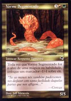 | Vorme Segmentado Criatura - Vorme Toda vez que Segmented Wurm for alvo de uma mágica ou habilidade, coloque um marcador -1/-1 em Segmented Wurm. T1 | |
