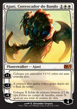 | Nome em Inglês: | Ajani, Caller of the Pride | | Nome em Português: | Ajani, Convocador do Bando | | Custo de Mana: |    | | Tipo: | Planeswalker - Ajani | | Texto: | +1: Coloque um marcador +1/+1 em até uma criatura alvo. -3: A criatura alvo tem Voar e Golpe Duplo até o final do turno. -8: Coloque no Campo de Batalha X fichas de criatura branca 2/2 do tipo Felino, onde X é seu total de pontos de vida. | | P/T: | 4 | | Série: |  | | Outras: | | | Raridade: | Mítico Raro | | Card: | 001 |