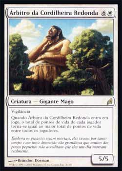 | Nome em Inglês: | Arbiter of Knollridge | | Nome em Português: | Árbitro da Cordilheira Redonda | | Custo de Mana: |   | | Tipo: | Criatura - Gigante Mago | | Texto: | Vigilância. Quando Arbiter of Knollridge entrar no Campo de Batalha, o total de pontos de vida de cada jogador se torna igual ao total de pontos de vida do jogador com mais pontos de vida entre todos os jogadores. | | P/T: | 5/5 | | Série: |  | | Outras: | | | Raridade: | Raro | | Card: | 002 |