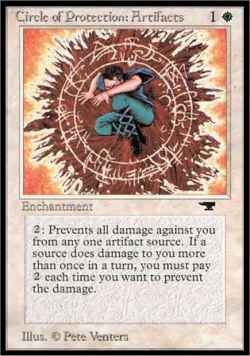 | Nome em Inglês: | Circle of Protection: Artifacts | | Nome em Português: | Sem nome em Português | | Custo de Mana: |   | | Tipo: | Encantamento | | Texto: | : Na próxima vez que uma fonte a sua escolha que seja um artefato fosse causar dano a você durante este turno, previne aquele dano. | | Série: |  | | Outras: | | | Raridade: | Incomum | | Card: | 004 |