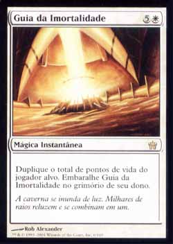 | Nome em Inglês: | Beacon of Immortality | | Nome em Português: | Guia da Imortalidade | | Custo de Mana: |   | | Tipo: | Mágica Instantânea | | Texto: | Duplique o total de pontos de vida do jogador alvo. Embaralhe Beacon of Immortality no grimório de seu dono. | | Série: |  | | Outras: | | | Raridade: | Raro | | Card: | 006 |