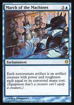 | Nome em Inglês: | March of the Machines | | Nome em Português: | Sem nome em Português | | Custo de Mana: |   | | Tipo: | Encantamento | | Texto: | Cada artefato que não seja uma criatura é uma criatura artefato com poder e resistência ambos iguais ao seu Custo de Mana Convertido (um Equipamento que seja uma criatura não pode Equipar uma criatura.) | | Série: |  | | Outras: | | | Raridade: | Raro | | Card: | 006 |