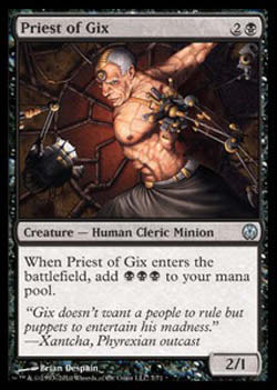 | Nome em Inglês: | Priest of Gix | | Nome em Português: | Sem nome em Português | | Custo de Mana: |   | | Tipo: | Criatura - Humano Clérigo Assecla | | Texto: | Quando Priest of Gix entrar no Campo de Batalha, adiciona   a sua reserva de mana. | | P/T: | 2/1 | | Série: |  | | Outras: | | | Raridade: | Incomum | | Card: | 007 |
