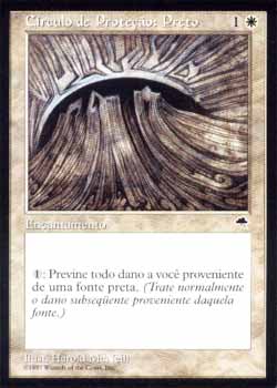 | Nome em Inglês: | Circle of Protection: Black | | Nome em Português: | Círculo de Proteção: Preto | | Custo de Mana: |   | | Tipo: | Encantamento | | Texto: | : Na próxima vez que uma fonte preta de sua escolha fosse causar dano a você durante este turno, previne aquele dano. Nota: Este card não foi lançado em Alpha, primeiro set de Magic. | | Série: |  | | Outras: | | | Raridade: | Comum | | Card: | 008 |