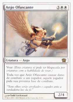 | Nome em Inglês: | Blinding Angel | | Nome em Português: | Anjo Ofuscante | | Custo de Mana: |    | | Tipo: | Criatura - Anjo | | Texto: | Voar. Toda vez que Blinding Angel causar dano de combate a um jogador, aquele jogador pula sua própria Fase de Combate em seu próximo turno. | | P/T: | 2/4 | | Série: |  | | Outras: | | | Raridade: | Raro | | Card: | 008 |