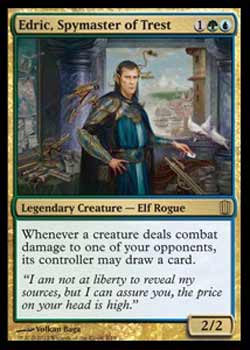 | Nome em Inglês: | Edric, Spymaster of Trest | | Nome em Português: | Sem nome em Português | | Custo de Mana: |    | | Tipo: | Criatura Lendária - Elfo Ladino | | Texto: | Toda vez que uma criatura causar dano de combate a um de seus oponentes, seu controlador pode comprar um card. | | P/T: | 2/2 | | Série: |  | | Outras: | | | Raridade: | Raro | | Card: | 008 |