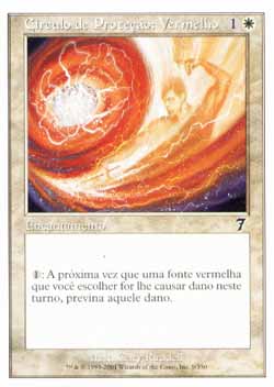| Nome em Inglês: | Circle of Protection: Red | | Nome em Português: | Círculo de Proteção: Vermelho | | Custo de Mana: |   | | Tipo: | Encantamento | | Texto: | : Na próxima vez que uma fonte vermelha de sua escolha fosse causar dano a você durante este turno, previne aquele dano. | | Série: |  | | Outras: | | | Raridade: | Comum | | Card: | 009 |