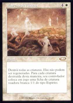 | Nome em Inglês: | March of Souls | | Nome em Português: | Marcha de Almas | | Custo de Mana: |   | | Tipo: | Feitiço | | Texto: | Destrói todas as criaturas. Elas não podem ser Regeneradas. Para cada criatura destruída desta forma, seu controlador coloca no Campo de Batalha uma ficha de criatura branca 1/1 do tipo Espírito com Voar. | | Série: |  | | Raridade: | Raro | | Card: | 010 |
