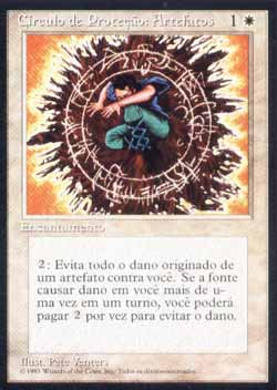 | Nome em Inglês: | Circle of Protection: Artifacts | | Nome em Português: | Círculo de Proteção: Artefatos | | Custo de Mana: |   | | Tipo: | Encantamento | | Texto: | : Na próxima vez que uma fonte a sua escolha que seja um artefato fosse causar dano a você durante este turno, previne aquele dano. | | Série: |  | | Outras: | | | Raridade: | Incomum | | Card: | 013 |