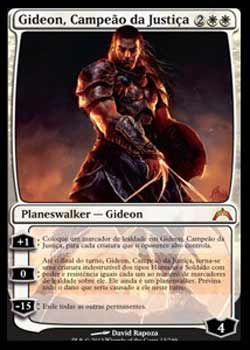 | Nome em Inglês: | Gideon, Champion of Justice | | Nome em Português: | Gideon, Campeão da Justiça | | Custo de Mana: |    | | Tipo: | Planeswalker - Gideon | | Texto: | +1: Coloque um marcador de lealdade em Gideon, Champion of Justice para cada criatura que o oponente alvo controla. 0: Até o final do turno, Gideon, Champion of Justice torna-se uma criatura Indestrutível do tipo Humano Soldado com poder e resistência ambos iguais ao número de marcadores de lealdade que houver nele. Ele ainda é um Planeswalker. Previne todo o dano que seria causado a ele durante este turno. -15: Exile todas as outras Permanentes. | | P/T: | 4 | | Série: |  | | Raridade: | Mítico Raro | | Card: | 013 |