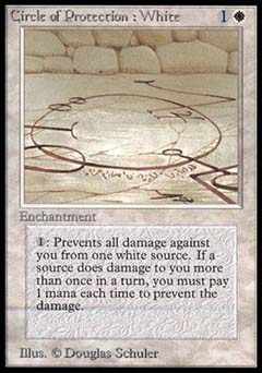 | Nome em Inglês: | Circle of Protection: White | | Nome em Português: | Sem nome em Português | | Custo de Mana: |   | | Tipo: | Encantamento | | Texto: | : Na próxima vez que uma fonte branca de sua escolha fosse causar dano a você durante este turno, previne aquele dano. | | Série: |  | | Outras: | | | Raridade: | Comum | | Card: | 014 |