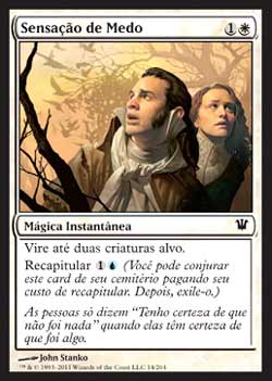 | Nome em Inglês: | Feeling of Dread | | Nome em Português: | Sensação de Medo | | Custo de Mana: |   | | Tipo: | Mágica Instantânea | | Texto: | Vire até duas criaturas alvo. Recapitular  . | | Série: |  | | Raridade: | Comum | | Card: | 014 |