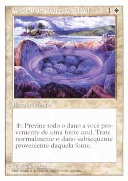 | Nome em Inglês: | Circle of Protection: Blue | | Nome em Português: | Círculo de Proteção: Azul | | Custo de Mana: |   | | Tipo: | Encantamento | | Texto: | : Na próxima vez que uma fonte azul de sua escolha fosse causar dano a você durante este turno, previne aquele dano. | | Série: |  | | Outras: | | | Raridade: | Comum | | Card: | 018 |
