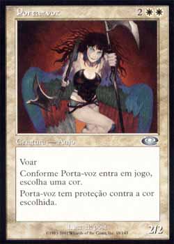 | Nome em Inglês: | Voice of All | | Nome em Português: | Porta-voz | | Custo de Mana: |    | | Tipo: | Criatura - Anjo | | Texto: | Voar. Conforme Voice of All entra no Campo de Batalha, escolha uma cor. Voice of All tem Proteção contra a cor escolhida. | | P/T: | 2/2 | | Série: |  | | Outras: | | | Raridade: | Incomum | | Card: | 019 |
