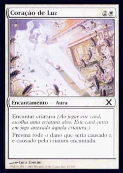 | Nome em Inglês: | Heart of Light | | Nome em Português: | Coração de Luz | | Custo de Mana: |   | | Tipo: | Encantamento - Aura | | Texto: | Encantar criatura. Previne todo o dano que seria causado à criatura encantada e pela criatura encantada. | | Série: |  | | Outras: | | | Raridade: | Comum | | Card: | 019 |