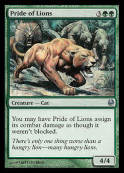 | Nome em Inglês: | Pride of Lions | | Nome em Português: | Sem nome em Português | | Custo de Mana: |    | | Tipo: | Criatura - Felino | | Texto: | Você pode fazer com que Pride of Lions cause seu dano de combate como se ele não tivesse sido bloqueado. | | P/T: | 4/4 | | Série: |  | | Outras: | | | Raridade: | Incomum | | Card: | 019 |