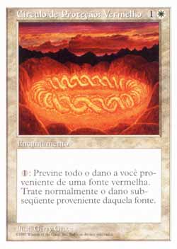 | Nome em Inglês: | Circle of Protection: Red | | Nome em Português: | Círculo de Proteção: Vermelho | | Custo de Mana: |   | | Tipo: | Encantamento | | Texto: | : Na próxima vez que uma fonte vermelha de sua escolha fosse causar dano a você durante este turno, previne aquele dano. | | Série: |  | | Outras: | | | Raridade: | Comum | | Card: | 020 |