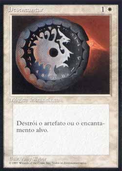 | Nome em Inglês: | Disenchant | | Nome em Português: | Desencantar | | Custo de Mana: |   | | Tipo: | Mágica Instantânea | | Texto: | Destrói o artefato alvo ou encantamento alvo. | | Série: |  | | Outras: | | | Raridade: | Comum | | Card: | 022 |