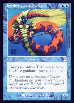 | Nome em Inglês: | Lord of Atlantis | | Nome em Português: | Senhor da Atlântida | | Custo de Mana: |   | | Tipo: | Criatura - Tritão | | Texto: | As outras criaturas do tipo Tritão ganham +1/+1 e têm Travessia de Ilha. | | P/T: | 2/2 | | Série: |  | | Outras: | | | Raridade: | Card Desviado no Tempo | | Card: | 024 |